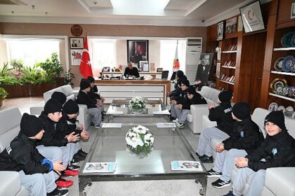 1918 Rize Futbol Kulübü Teknik Direktörü ve Kulüp Başkanı Halil Atabey ve minik futbolcular, Kemer Belediye Başkanı Necati Topaloğlu’na nezaket ziyaretinde bulundu....
