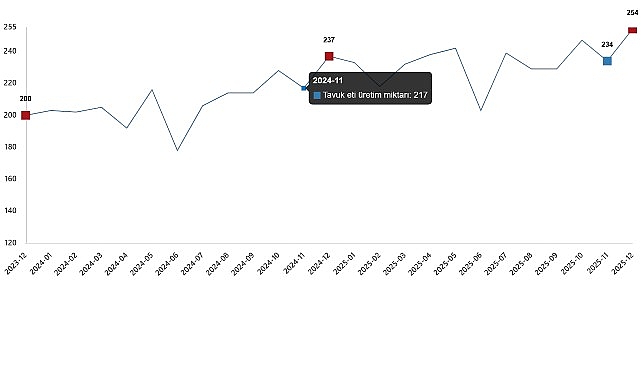 Tavuk eti üretim miktarı, Aralık 2025