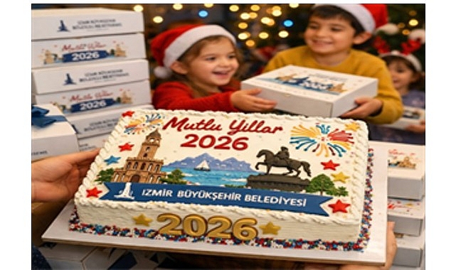 İzmir Büyükşehir Belediyesi, 2026 yılına girerken çocukları mutlu etmek için yine yeni yıl pastası sürprizi yaptı. Büyükşehir Belediyesi’nin Sosyal Yardım Takip Sistemi’nde kayıtlı haneler için İzmir Büyükşehir Belediyesi Sosyal Yaşam Kampüsü içinde hizmet veren Aşevi’nde 3 bin 20 pasta yapıldı. Dağıtıma başlanan pastaların kutuları içinde İzmir Büyükşehir Belediye Başkanı Dr. Cemil Tugay’ın yeni yıl mesajı da yer aldı.