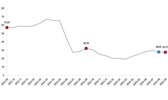 YD-ÜFE 2025 yılı Eylül ayında bir önceki aya göre %2,01 artış, bir önceki yılın Aralık ayına göre %27,55 artış, bir önceki yılın aynı ayına göre %27,71 artış ve on iki aylık ortalamalara göre %25,19 artış gösterdi.